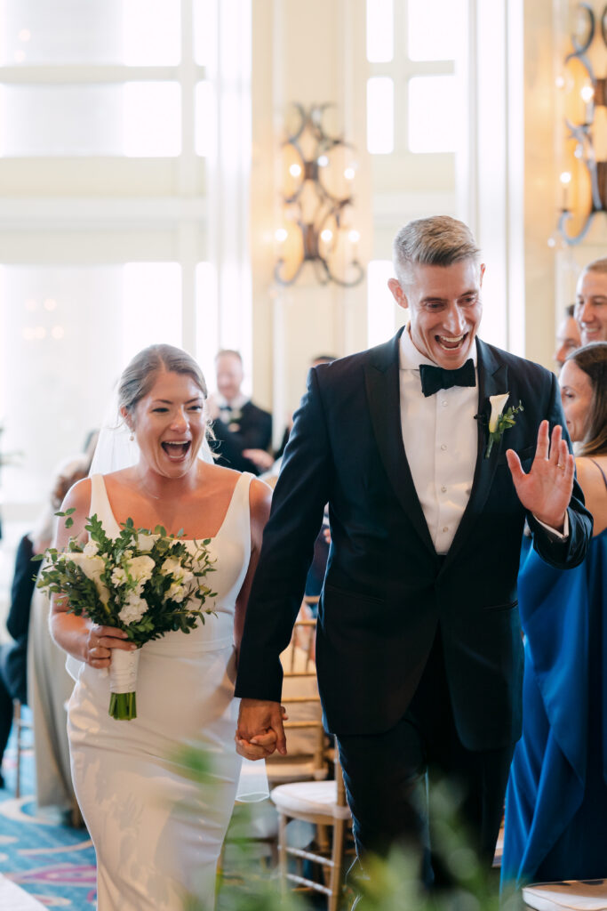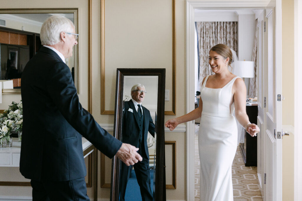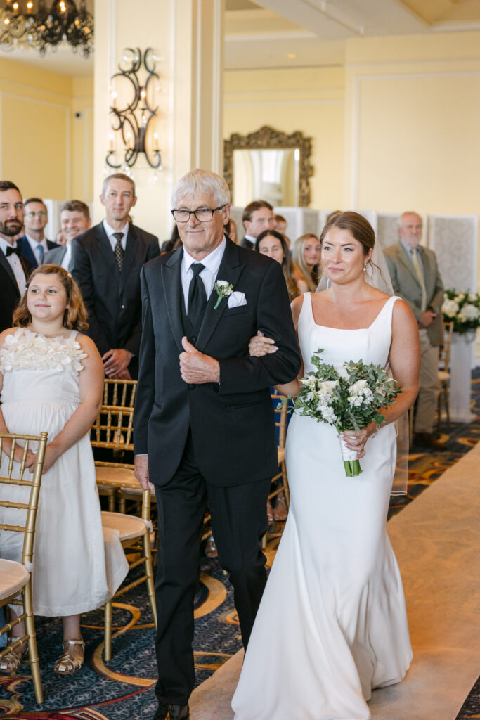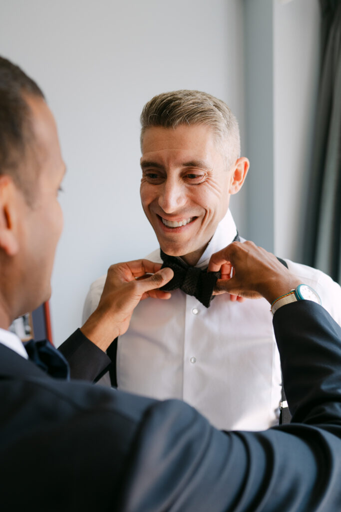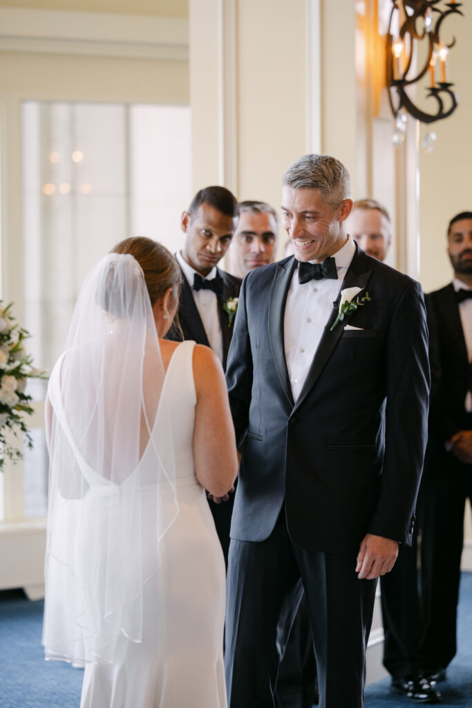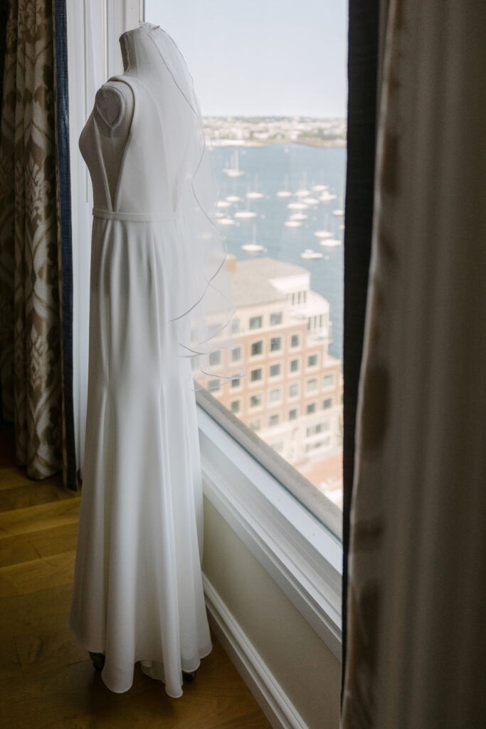Their day started with getting ready and their first look at the harbor. The ceremony took place inside the hotel’s stunning event space, with the harbor glittering through the floor-to-ceiling windows behind them.